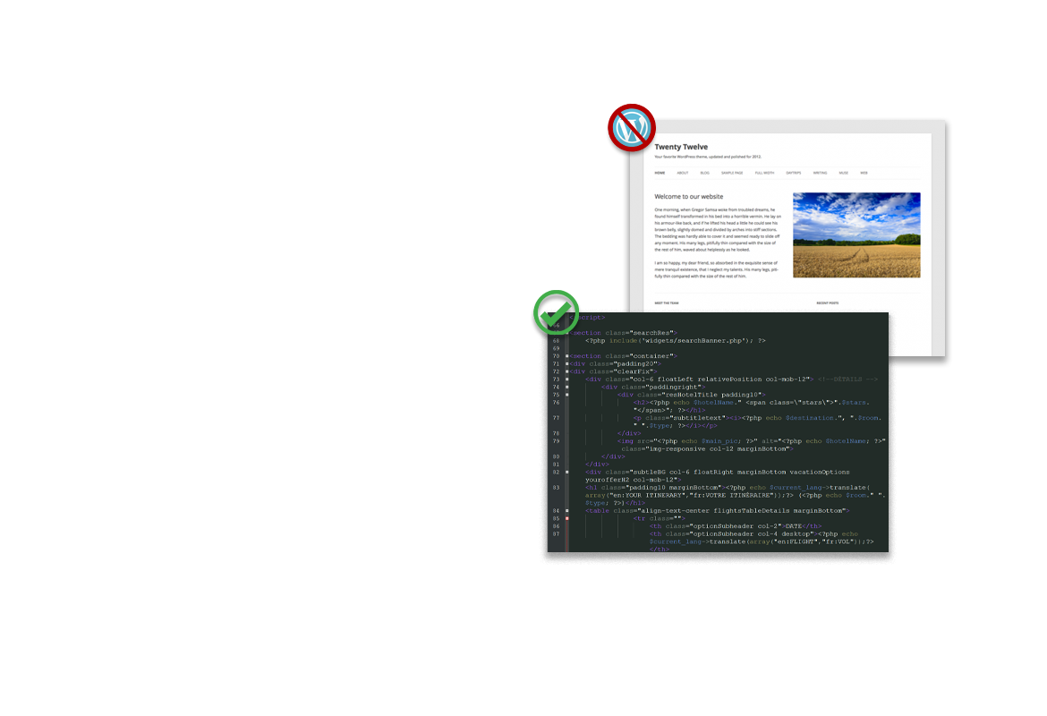 We will never use free CMS or templates like WordPress or Joomla that are too complicated to use for regular users, our Framework and CMS (KAS) are tailored to each project allowing our clients to easily manage their websites without any previous experience.